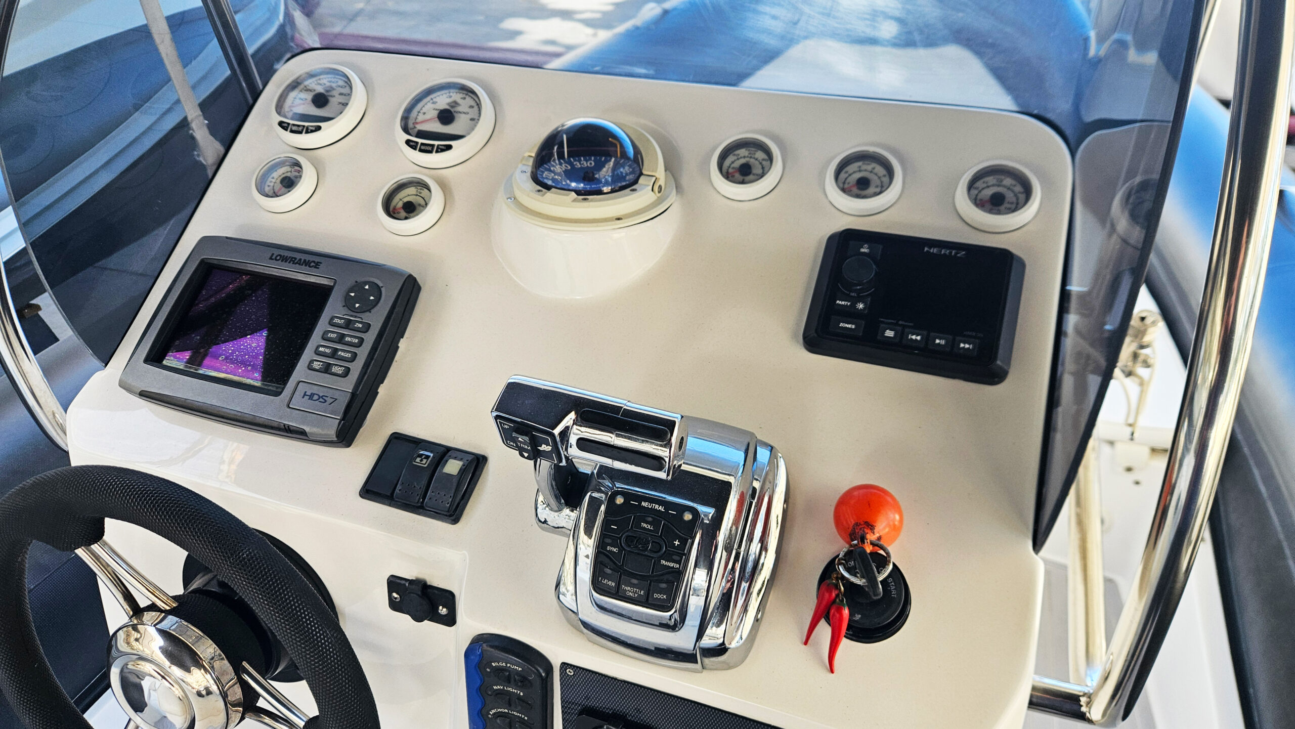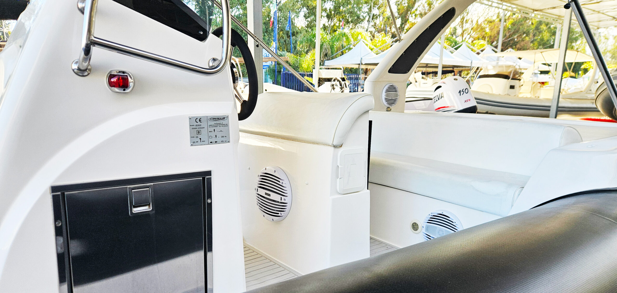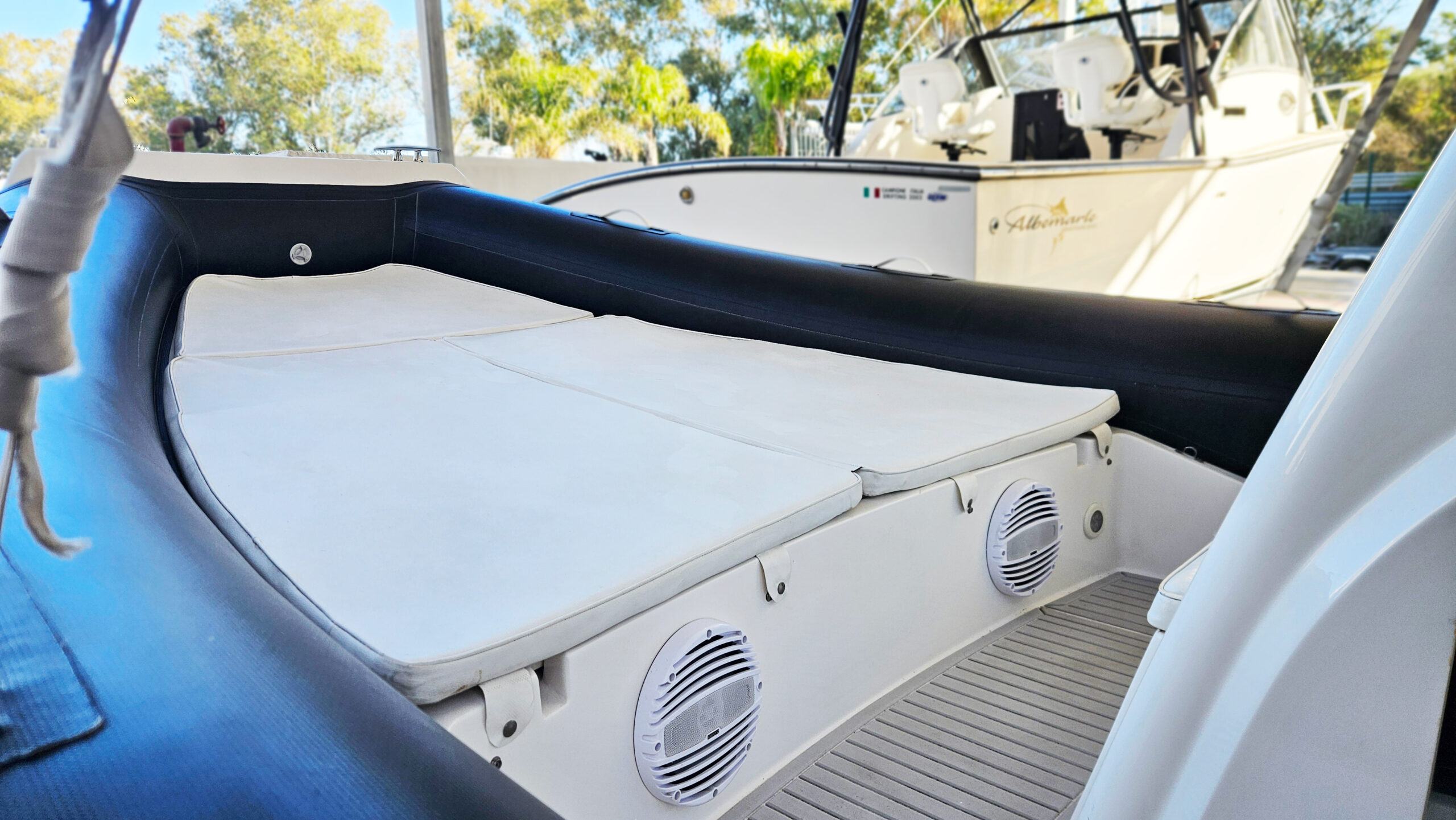 ECCO ALCUNI ACCESSORI IN DOTAZIONE: Teak pozzetto, teak plancetta, impianto stereo Hertz+ 6 casse + subwoofer, gonfiatore elettrico, luci sub, gps Lowrance HDS7, salpa ancora, carica batterie, frigo 50lt, luci piano calpestio, vhf Cobra e tanti altri accessori in dotazione