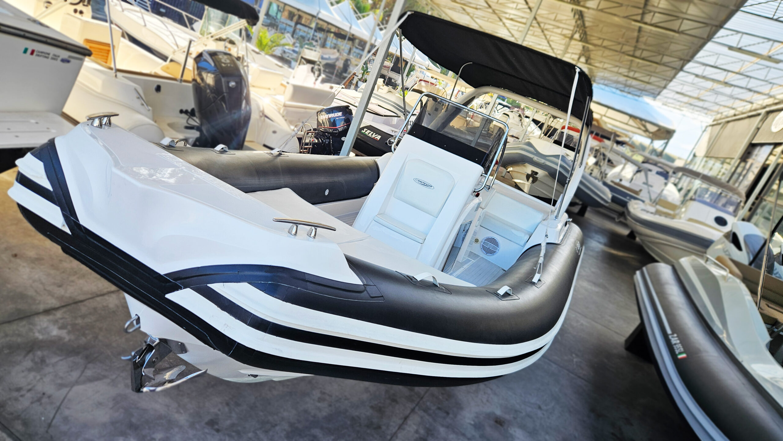 Comfort: Ampio prendisole a prua e a poppa, con sedili confortevoli e materiali di alta qualità.