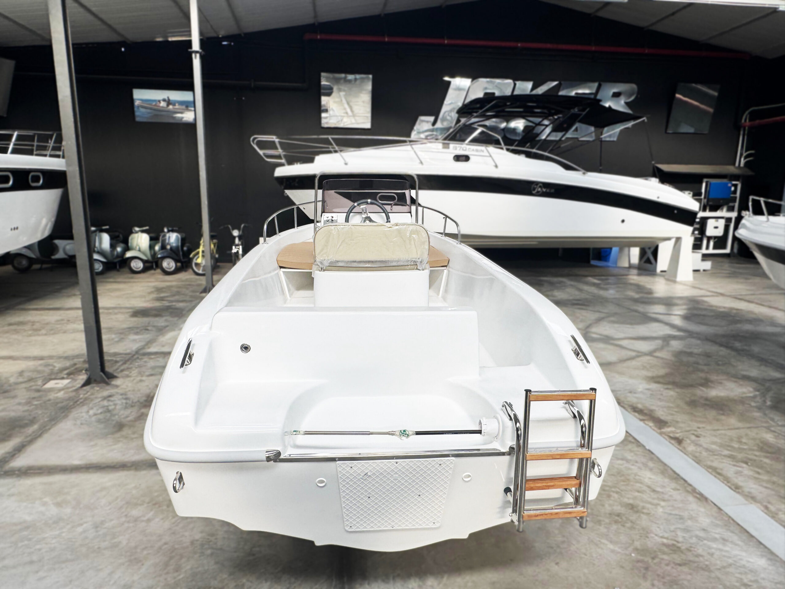 È il modello “start up” della nostra gamma Open. Misura fuoritutto è una lunghezza di 5.30 metri e può essere motorizzato con una potenza massima di 80 cavalli, ma già con un 40 Hp è in grado di fornire prestazioni velocistiche tali da garantire divertimento e sicurezza (oltre 24 nodi con 4 persone di equipaggio). Il prezzo la rende unità da diporto davvero appetibile sia per i neofiti che per coloro che possono dedicare poco tempo alla navigazione, o infine per chi ha problemi di spazio di rimessaggio. Brillante e scattante sia nelle partenze che nelle virate strette, la 520 Open mantiene un elevato grado di stabilità e direzionalità anche in caso di rapidi ed improvvisi cambi di traiettoria. La configurazione di coperta è tipica dei nostri Open con un’ampia area prendisole in parte componibile attraverso i tre piani di completamento amovibili, nella cui parte sottostante si rende disponibile un gavone capiente per le dotazioni di bordo. A poppa invece troviamo un divano per 3 persone che sormonta il vano servizi. La postazione di guida è centrale e propone una console con tientibene inox, parabrezza e sedile fronte marcia, completata da un cassero di seduta per il pilota. Per i più esigenti sono disponibili diversi accessori che permettono di personalizzare il 520 Open, come ad esempio la scaletta bagno, la bussola, l’impianto doccia con serbatoio dell’acqua dolce, due tasche laterali in abs e le varie coperture dal sole e per lo scafo in rimessaggio.